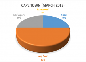 Llama Life Solutions (March 2019) carried out a review of top 60 hotels in major cities of South Africa (Cape Town, Durban and Johannesburg), by analyzing customer review trends, over a two-year period. The reviews captured customer responses and levels of satisfaction with these establishments. The following service ratings were used: Good, Very Good, Fabulous/Superb and Exceptional.